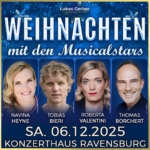 Jetzt ist der perfekte Zeitpunkt um sich Tickets für „Weihnachten mit den Musicalstars“ am 06.12.2025 in Ravensburg zu sichern: